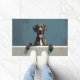 The cool steel blue background adds a modern and sophisticated touch, making it perfect for stylish entryways. Designed with extra space at the top and bottom, it allows easy personalization with names, welcome messages, or custom text—ideal for unique dog-themed doormats and thoughtful gifts.