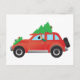 Great Dane driving car with Christmas tree on top Holiday Postcard