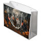 Unleash the spooky spirit with this eerie Halloween design featuring a pack of dogs under a dark, moonlit sky, surrounded by flying bats and glowing pumpkins. Perfect for those who love a touch of frightful fun with their furry friends!