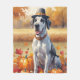 Great Dane In Autumn Leaves Thanksgiving Art Fleece Blanket