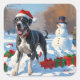 Great Dane Running in Snow with Christmas Hat Square Sticker