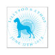 Stamp with dog illustration in a etched style. Blue Ink tone, best for whatever you try to announce