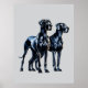 A stylised illustration of two majestic Great Danes standing side by side, showcasing their sleek, muscular bodies and elegant features. The dogs are black with smooth, glossy coats, accentuated by dramatic shadows and highlights to emphasize their strong physiques with a subtle watercolor effect adding an artistic touch.