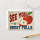 A charming Great Falls Montana vintage travel postcard featuring a lovely red apple, along with fun retro style text that says, "See you in Great Falls"
