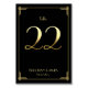 Great Gatsby Art Deco wedding table number cards with golden number 22 and customisable text, where you can add your names and wedding date, printed on black background