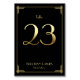 Great Gatsby Art Deco wedding table number cards with golden number 23 and customisable text, where you can add your names and wedding date, printed on black background