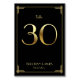 Great Gatsby Art Deco wedding table number cards with golden number 30 and changeable text, where you can add your names and wedding date, printed on black background