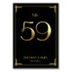 Great Gatsby Art Deco wedding table number cards with golden number 59 and changeable text, where you can add your names and wedding date, printed on black background