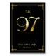 Great Gatsby Art Deco wedding table number cards with golden number 97 and changeable text, where you can add your names and wedding date, printed on black background