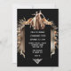 An ornate faux rose gold and silver metallic frame has 2 elegant Flapper dancing girls wearing long golden evening dresses on it surrounded by exploding black, white and gold fireworks. A black inlay appears below them on which white templates for your personalised wording appear. The design is suited to 1920's theme parties; art deco themed celebrations or Great Gatsby events. They are perfect for both business and personal use. The back has a photo for the birthday boy or girl which may be deleted to reveal a black background.