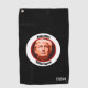 This distinctive golf towel features an artist's portrait of Donald Trump at the centre. The circular portrait is encircled by the black text "Make GOLF GREAT Again". The image is placed on a black background. Your three letter monogram is in white at the bottom right. This towel is sure to start a conversation!
