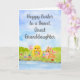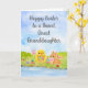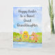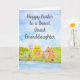 Bright spring colors and playful charm fill this watercolor Easter card, featuring a fluffy baby chick carrying a basket of colorful Easter eggs while a friendly bunny wearing a pink bowtie keeps watch nearby. Set among blooming pastel tulips, the scene captures the excitement and fresh spirit of the season. Thoughtfully created as a special Easter greeting for your great granddaughter, this cheerful design sends warm wishes, smiles, and joyful holiday fun.