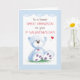 Celebrate your sweet great grandson's very first Valentine's Day with this adorable card! A cuddly teddy bear sits charmingly on the cover, sharing love through a heart in a speech bubble. The light blue background adds a soft and gentle touch, while pink text across the top reads, "To a Sweet Great Grandson on Your 1st Valentine's Day." The delightful design is completed with a decorative trim for a perfect finishing touch. Inside, warm and snuggly wishes are sure to make this keepsake a treasured memory for years to come.