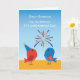 The front of the card features a dynamic scene where the sky is alive with colourful fireworks. Explosions of red, blue, green, and gold fill the air, creating a breathtaking display of light and colour. Below the brilliant fireworks, two charming birds show their excitement and joy as they watch the fireworks burst overhead.