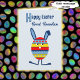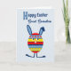 This colorful Easter rabbit is here to say "Happy Easter" to your great grandson. The bunny is shaped and decorated like an Easter egg, with colorful stripes, spots and zigzags in red, yellow and blue, and the background of the card is pale blue. The message inside can be personalized, or you can use the greeting provided "A happy Easter bunny is here to wish a special great grandson a very Happy Easter!"