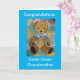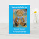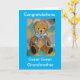 'Congratulations great great grandmother on a photo of a cute little teddy with a blue bow.