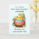 Make Easter extra special for your great-great-grandson with a personalised touch! This bright and cheerful card features a newly hatched chick nestled among colourful spring flowers, symbolising joy and new beginnings. Set against a soft pastel teal background, this charming design comes to life even more when personalised with his name on the front. Inside, a heartfelt message shares love and warm Easter wishes, making this a treasured keepsake just for him.