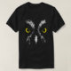 Tee-shirt featuring logo / graphic created from a black and white image of a great grey owl / great grey owl with bright yellow eyes staring out at the viewer