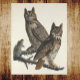 Great Horned Owls Spooky Vintage Illustration Poster