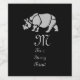 A stamp style great indian rhinoceros from the side. This large mammal is also known as the rhinoceros unicorn and only has one horn. Below the animal is a text that says "M" the m is short for monogram and can be personalised for your initials.