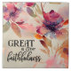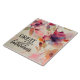 Ceramic tile depicts a beautiful floral watercolor including elegant pink and lavender flowers and greenery on a light gold background. It features the beloved Christian Hymn, "Great is Thy Faithfulness."