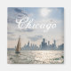Place this Chicago refrigerator magnet on your frig as a souvenir to remember your vacation trip to the Windy City. Lake Michigan and the sailboat is the perfect example of what the city really looks like in all it's glory and why it's called the "Paris of the Midwest". Personalise with the date of your visit for truly a custom gift.