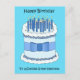 A giant birthday cake, iced in blue and white, and covered in several lit candles. The image has a turquoise background and is accompanied by the words 'Happy Birthday to a Special Great Nephew'.