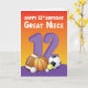 Bring in a bouncy birthday greeting for your dear great niece with this card that has a sports balls collection on the front. Perfect to send her a fun 12th birthday greeting soon.