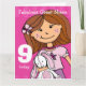 Cute girl with white lucky rabbit birthday card. This card reads Fabulous Great Niece 9 today. Inside: Happy Birthday. Or customize with your own words. Fun card designed by exclusively by Sarah Trett.