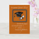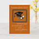 Celebrate with your great niece as she graduates. It can be high school. college or higjher education. Burnt orange background shows the white text and a black cap and diploma wrapped in a white ribbon. Say congratulations to your niece on her graduation.