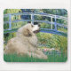 Lily Pond Bridge by Claude Monet, adapted to include a Great Pyrenees . With varying hues of green and blue, this serene scene is one of Monet's most popular paintings.