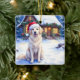 Great Pyrenees Snowy Mountain Lodge Santa Hat Ceramic Ornament