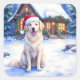 Great Pyrenees Snowy Mountain Lodge Santa Hat Square Sticker