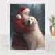 Great Pyrenees With Santa Claus Festive Christmas Card