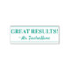 This positive rubber stamp design features the positive feedback message "GREAT RESULTS!" and a personalised educator name. It could be used by a teacher, educator, or tutor when marking assignments, to indicate that the student has done a great job.
