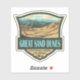 Great Sand Dunes vector artwork design. The park is in southern Colorado. It’s known for huge dunes like the towering Star Dune, and for the seasonal Medano Creek and beach created at the base of the dunes.