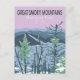 Great Smoky Mountains vector artwork design. The park encompasses lush forests and an abundance of wildflowers that bloom year-round.