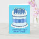 A large blue and white cartoon birthday cake set against a blue coloured background and the words 'Happy Birthday Great Uncle'.