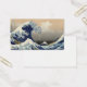 Vintage watercolor of what some say is a tidal wave about to hit the shoreline of Japan as fishermen try to escape in their boats. Mount Fuji is in the background.