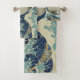 A fun bath towel set designed with 36 Views of Mount Fuji: The Great Wave Off the Coast of Kanagawa by Katsushika Hokusai from the Edo period, c. 1830. Traditional woodblock print.