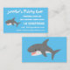 A happy, hungry great white shark is swimming in the ocean. Drawn in cute cartoon illustration style on a blue background for a fun day!