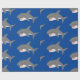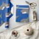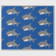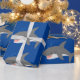 A happy, hungry great white shark is swimming in the ocean. Drawn in cute cartoon illustration style on a blue background for a fun day!