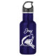Great white shark personalised water bottle gift. Blue or custom colour drink bottle. Add your own custom name. Unique gift idea for kids, sailor, skipper, boat captain, fisher etc. Wild shark drawing.