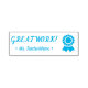This inspiring rubber stamp design features the encouraging feedback message "GREAT WORK!" and a customised educator name. It also features a decorative prize ribbon icon. It could be used by a school teacher, educator, instructor, or tutor when grading student work, to indicate that a student has done an exceptional job.