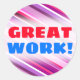 "GREAT WORK!" + Pink, Purple Stripes Pattern Classic Round Sticker
