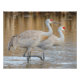 A pair of Sandhill Cranes wades through the shallow waters of the local wildlife refuge on a cloudy mid-winter's day. These are the largest birds that can be seen in Metro Vancouver all year round, more often on the ground, but occasionally in the air, too. As wild (and large) as they are, the ones who frequent the Reifel Migratory Bird Sanctuary will consent to being handfed, and indeed, sometimes demand disbursement of birdseed this way!