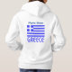 Women's hoodie shows the Greek flag and the word, GREECE, below in blue. The flag shows blue and white stripes with a blue and white cross in the upper right area. Above it, add a name, in blue letters, too, for a personalised touch or create a customised gift. Fun for Greek family reunions, travel groups, and sharing your love an pride in your heritage, ancestry and culture. Great for celebrating Oxi Day (Ohi or Ochi, too).