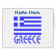 Personalised note cards featuring the Greek flag and the word, GREECE, below in blue. The flag shows blue and white stripes with a blue and white cross in the upper right area. Above it, add your name in blue letters for a personalised touch or create a gift. Fun for notes about family reunions, travel groups, clubs, and sharing your love an pride in your heritage, ancestry and culture. Great for celebrating Oxi Day.