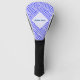 Golf head cover features the Greek flag and the word, GREECE, below in blue, tiled diagonally for an artistic look.. The flag shows blue and white stripes with a blue and white cross in the upper right area. A white, textured fractal of squiggly squares holds a spot for your name to personalise or create a customised gift. Fun for family reunions, travel groups, and sharing your love an pride in your heritage, ancestry and culture. Great for celebrating Oxi Day.