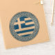 Greece flag with Greek key pattern distressed round design sticker. Add a touch of Greece to your home or office with this beautiful sticker design of the Greek flag.